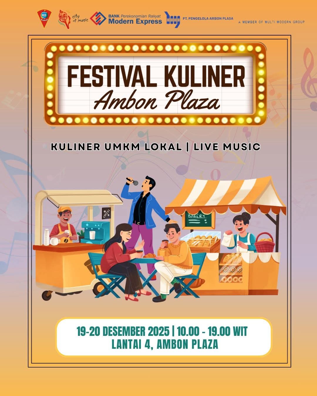 “Festival Kuliner Ambon Plaza menghadirkan berbagai kuliner khas UMKM lokal, sekaligus hiburan live musik sebagai bagian dari rangkaian event akhir tahun,” ungkap Tukloy.