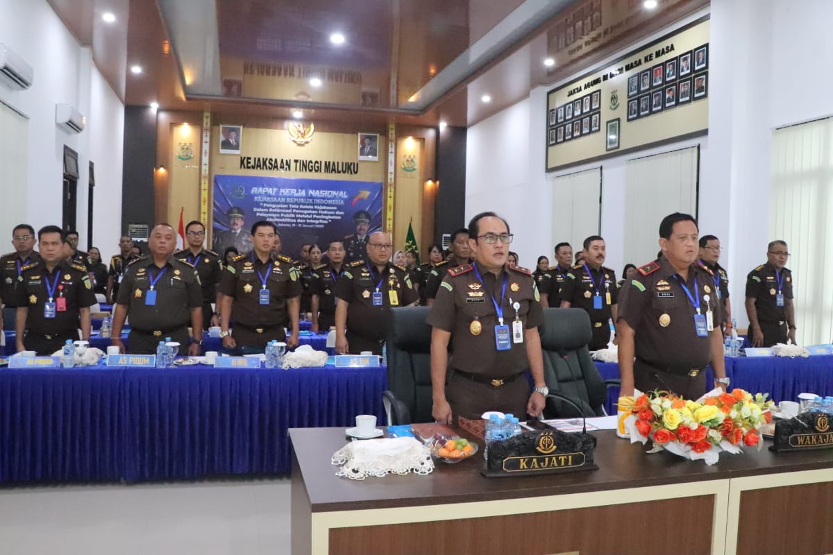 Ambon,Info-Aktual.com – Kepala Kejaksaan Tinggi (Kajati) Maluku Rudy Irmawan, S.H., M.H., beserta jajaran mengikuti Rapat Kerja Nasional (Rakernas) Kejaksaan Republik Indonesia Tahun 2026 secara virtual, Selasa (13/1/2026).