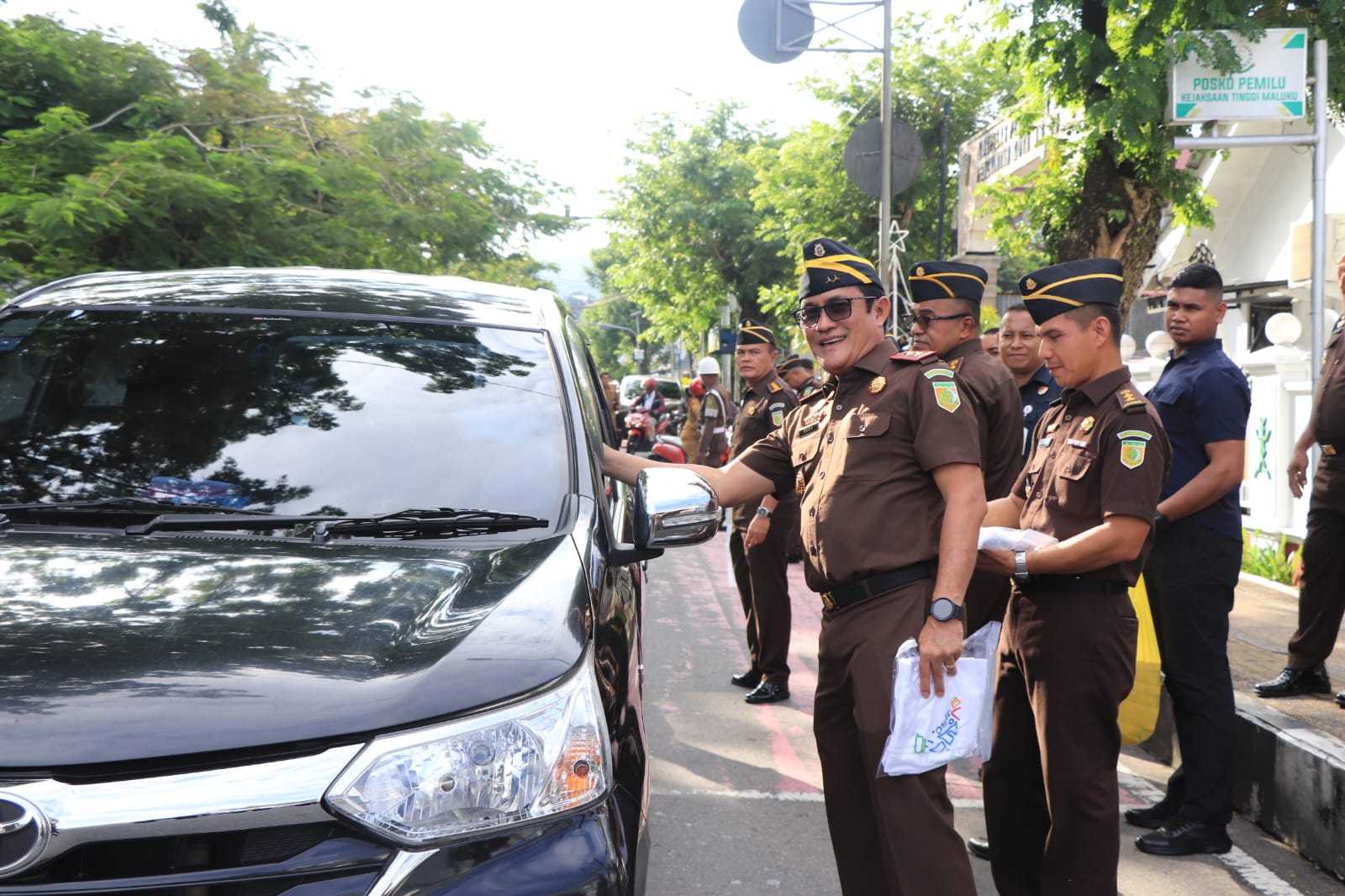 Setelah melalui serangkaian Upacara Peringatan Hari Anti Korupsi Sedunia 2025, Kajati Maluku Rudy Irmawan didampingi Wakajati Maluku Adhi Prabowo bersama segenap jajaran Pejabat Utama Kejaksaan Tinggi Maluku, melaksanakan Kampanye Anti Korupsi berupa pemasangan Sticker dan pemberian Souvenir Baju bertuliskan Peringatan Hari Anti Korupsi kepada pengendara Mobil dan Motor yang melintas didepan Kantor Kejaksaan Tinggi Maluku. (IA)