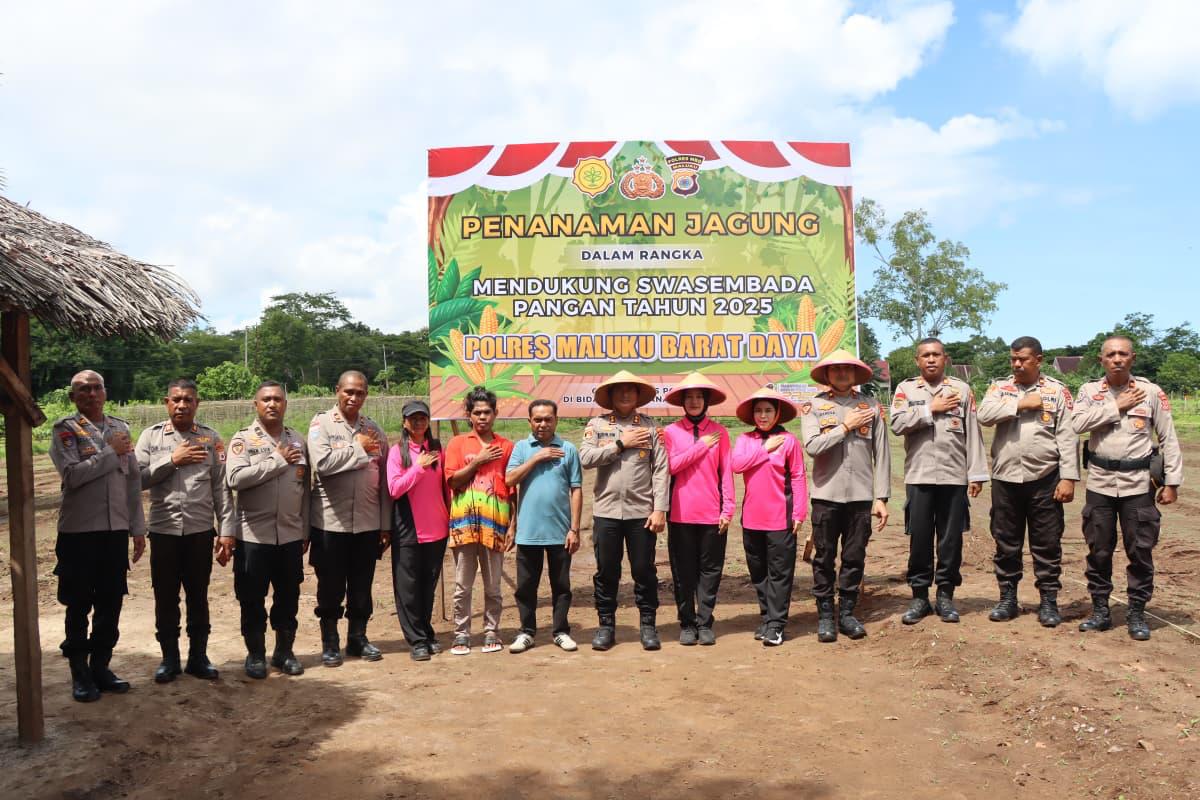 Tiakur, Info-Aktual.com, Polres Maluku Barat Daya (MBD) melaksanakan Kegiatan Penanaman Jagung dalam rangka mendukung Swasembada Pangan Tahun 2025, yang berlangsung di lahan Mako Polres MBD, Jumat (12/25).