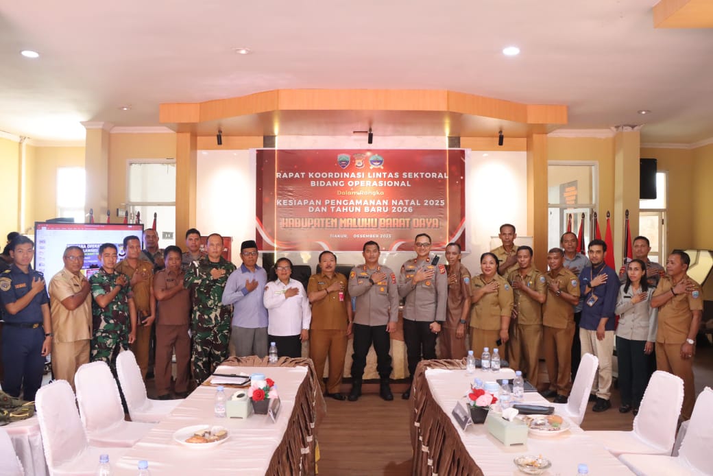 Tiakur, Info-Aktual.com, — Polres Maluku Barat Daya mematangkan kesiapan pengamanan perayaan Natal 25 Desember 2025 dan Tahun Baru 1 Januari 2026 (Nataru) melalui rakor lintas sektoral bidang operasional.