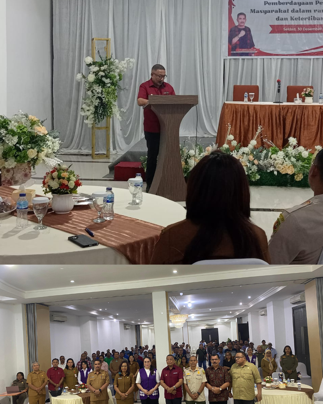 Penegasan tersebut disampaikan dalam sambutan Wali Kota yang dibacakan oleh Sekretaris Kota Ambon, Roberd Sapulette, ST., MT, pada kegiatan Pemberdayaan Perlindungan Masyarakat dalam rangka Keamanan dan Ketertiban Umum yang digelar di Hotel Marina Ambon, Selasa (30/12/2025).